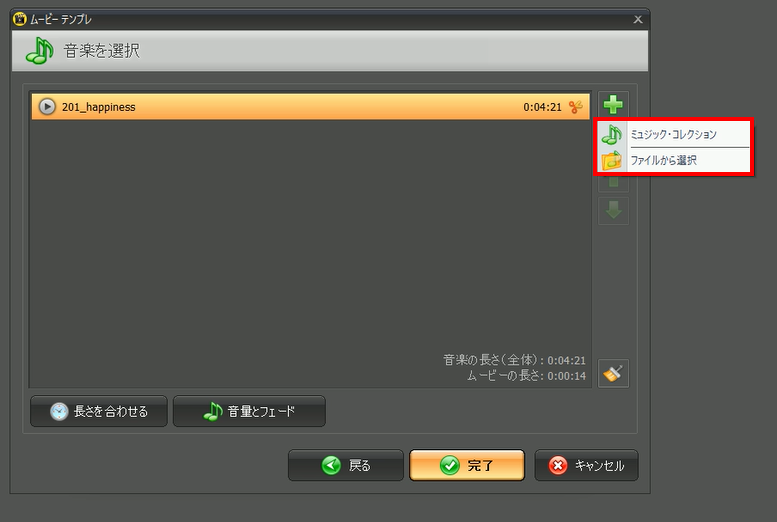 「ミュージック・コレクション」もしくは、「ファイルから選択」をクリックします。