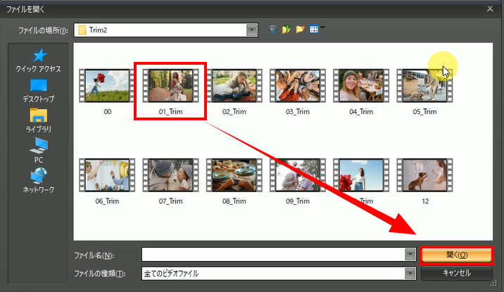 素材で使うビデオファイルは、あらかじめカット編集して短いビデオにしておきましょう。