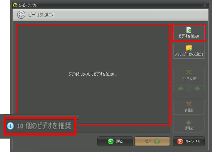 今回のムービーテンプレは、10個のビデオが推奨になっています。