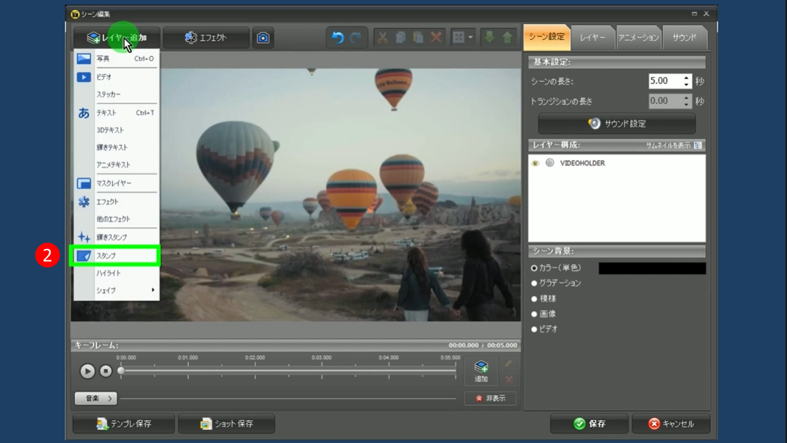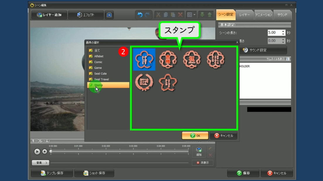 このガイドでは、シーンにスタンプを追加する手順をご案内します。