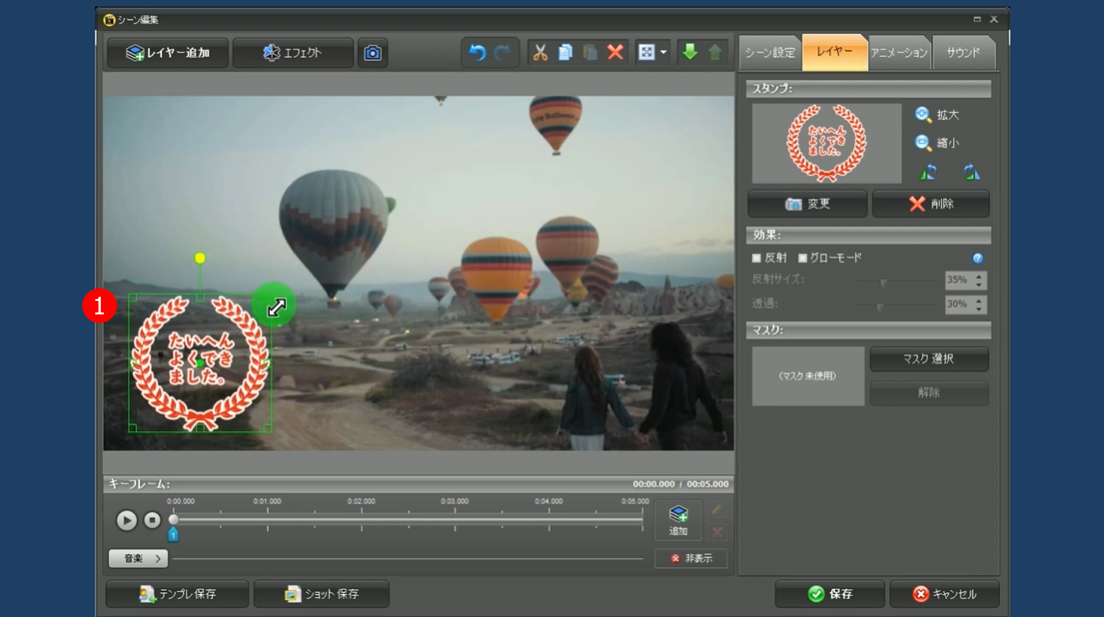 スタンプは、シーンに自由に貼れるシールのようなテンプレです。