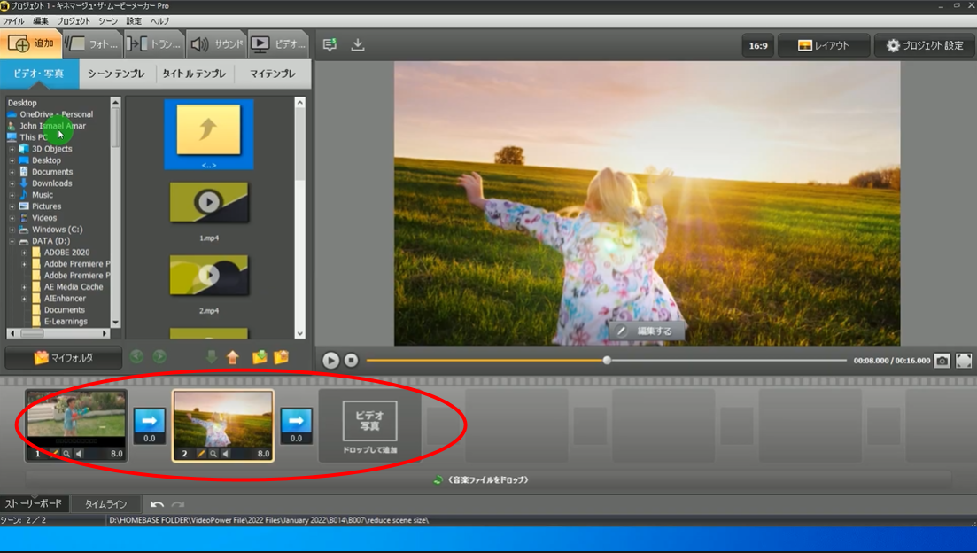 キネマージュ・ムービーメーカーでは、シーン単位でムービーを作っていきます。