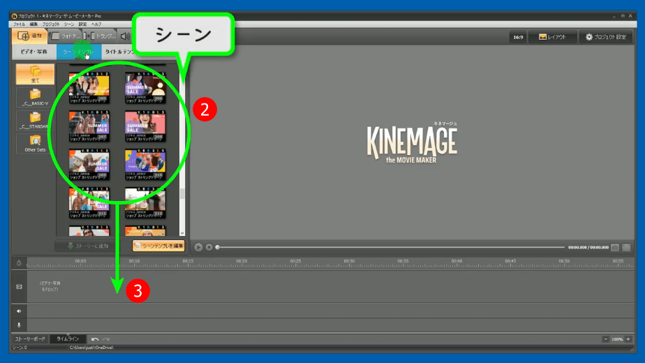 キネマージュ・ムービーメーカーは、シーン単位にムービーを作っていきます。