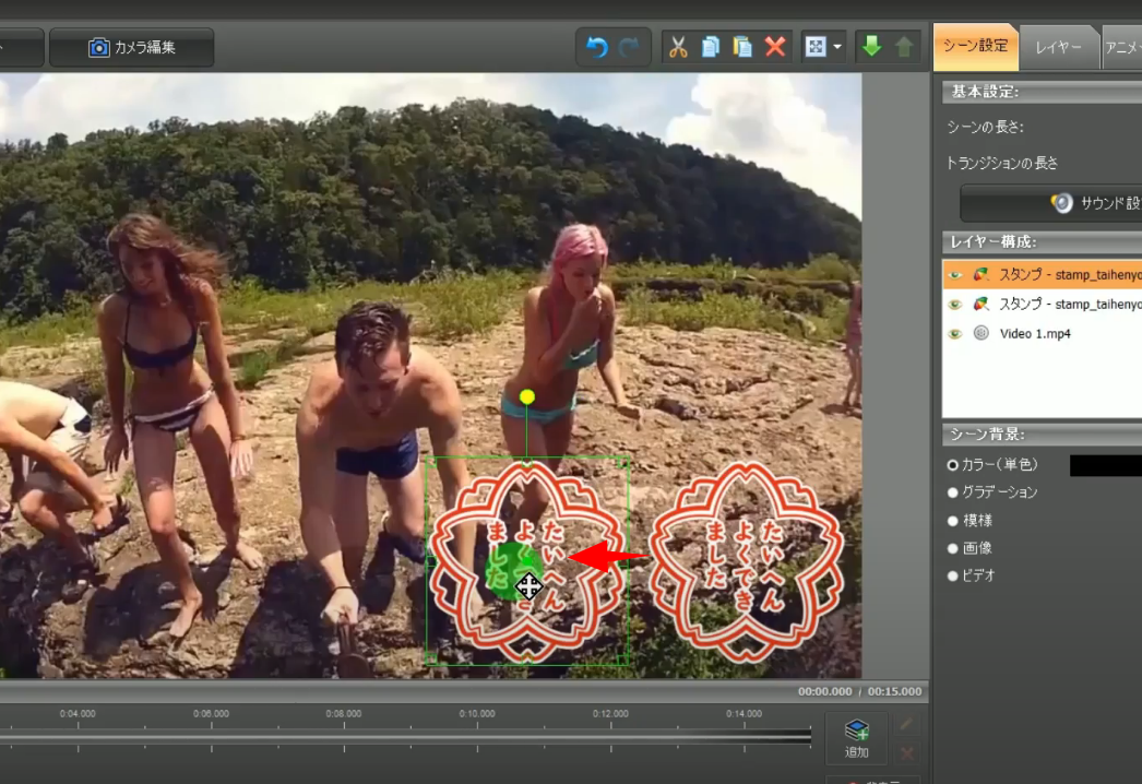 スタンプは、シーンに簡単に貼れます。