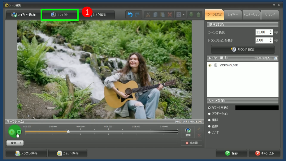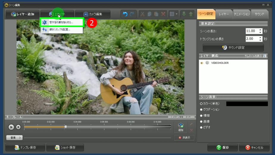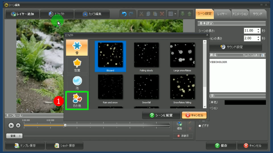 このガイドでは、エフェクト機能を使って、雪を降らせる手順をご案内します。