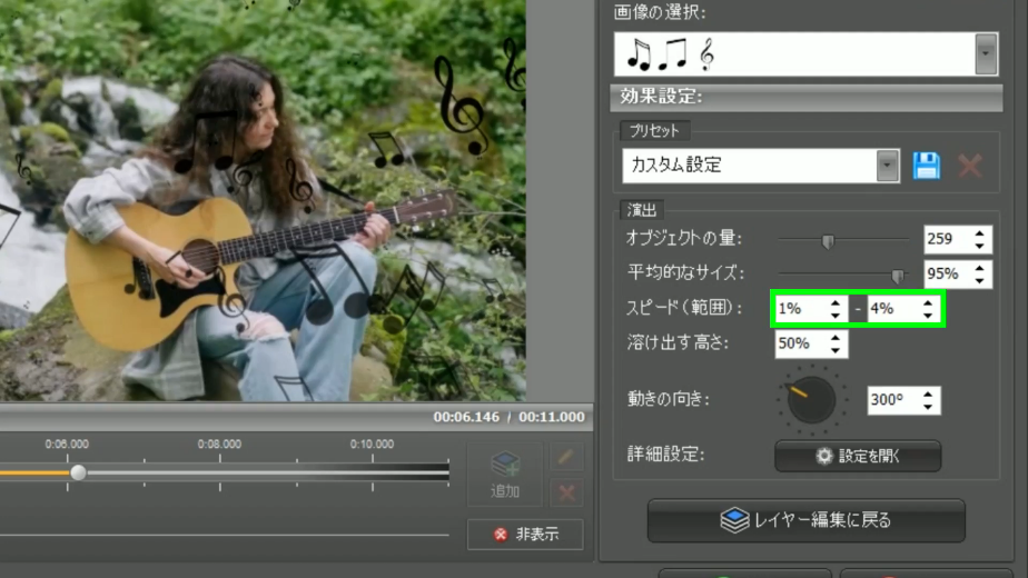 ☆ 流れでる音符を配置する方法(エフェクト使用)