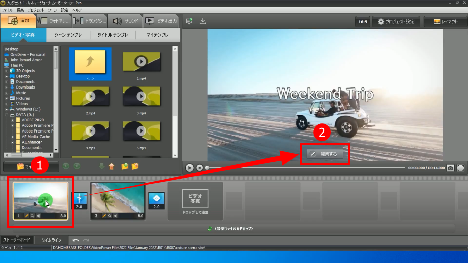 メイン画面に戻ったら、ストーリーボード、またはタイムラインから、