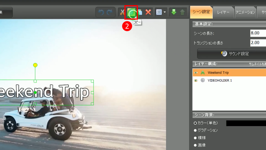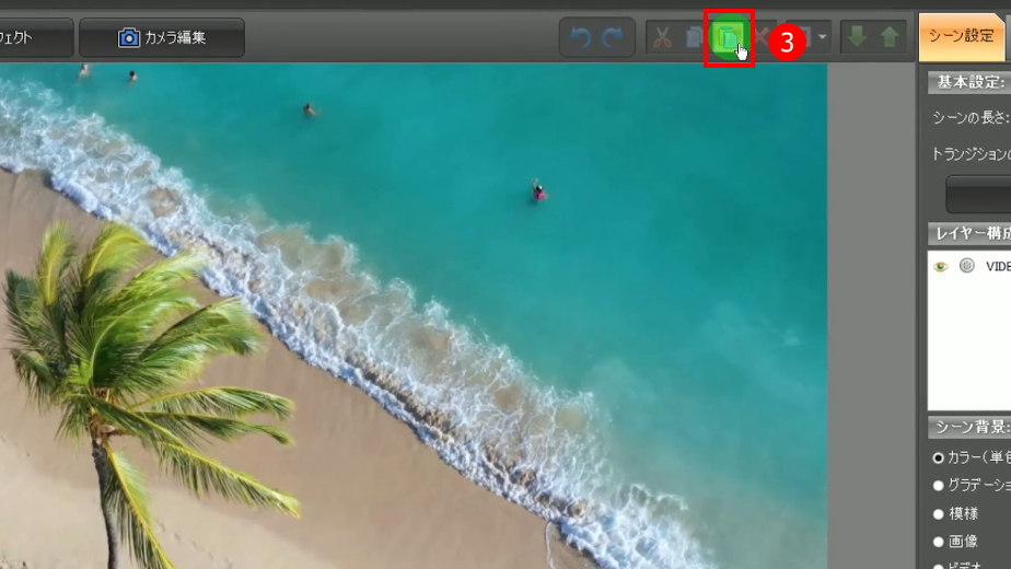 編集画面の、コピー・ペースト機能を使うと、同じシーン上はもちろん、