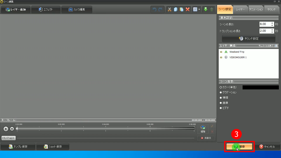 1)シーン編集画面を開く